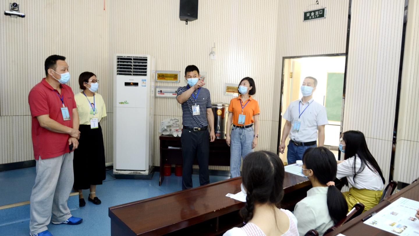 考試當日,劉勇和商洛市招辦副主任尚軍田在我校教務(wù)處負責(zé)人的陪同下,深入身份核驗區(qū)、體溫檢測區(qū)、候考區(qū)、引導(dǎo)區(qū)、考務(wù)工作辦公室等各個工作點檢查指導(dǎo)考試工作,每到一處都詳細詢問檢查,叮囑工作人員精心做好各項考務(wù)工作。