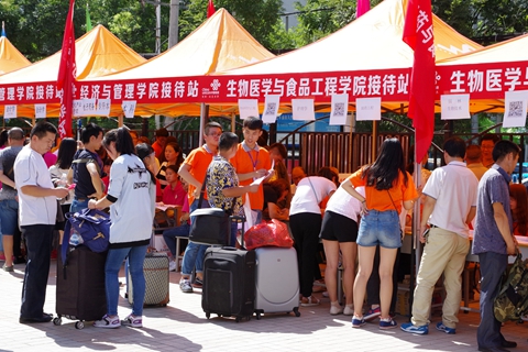 迎新期間,我校精心部署、周密安排,各部門、各二級學(xué)院緊密配合,確保整個迎新工作順利進行。為方便外省市新生順利入校,學(xué)校在火車站、汽車站和校門口等地方分別設(shè)立迎新接待點,校車一路暢通,日夜不間歇接送,為新生及家長們提供便利服務(wù)。校內(nèi)設(shè)立了新生咨詢處、行李寄存處、公安執(zhí)勤處、醫(yī)療服務(wù)處、家長休息區(qū)、繳費處、戶籍辦理處、軍訓(xùn)服裝發(fā)放處、銀行卡與通信卡辦理處等場點,為家境貧困的學(xué)生開放了“綠色通道”,辦理助學(xué)貸款。各個路口醒目位置都設(shè)置有迎新指示牌,志愿者們穿梭其中,為新生提供各類咨詢和幫助。
