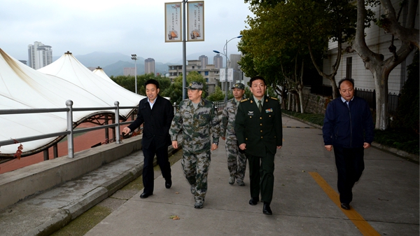 座談會結(jié)束后,谷星林一行在彭虎軍等人員的陪同下,實地考察了學(xué)校校園環(huán)境和國防戶外訓(xùn)練場地。