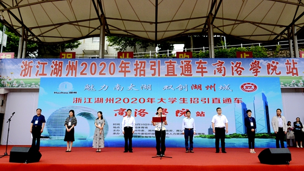 為認(rèn)真貫徹落實(shí)全國(guó)普通高等學(xué)校畢業(yè)生就業(yè)創(chuàng)業(yè)工作電視電話(huà)會(huì)議精神,6月10日,我校與湖州市委、湖州市人民政府在學(xué)校體育場(chǎng)共同舉辦商洛學(xué)院2020屆畢業(yè)生湖州專(zhuān)場(chǎng)招聘會(huì)。我校校長(zhǎng)范新會(huì)、校黨委副書(shū)記彭虎軍,中共湖州市委組織部副部長(zhǎng)、湖州市人力資源與社會(huì)保障局局長(zhǎng)王樹(shù),湖州市人力資源與社會(huì)保障局副局長(zhǎng)郭連偉出席啟動(dòng)儀式并現(xiàn)場(chǎng)指導(dǎo)招聘活動(dòng)。校相關(guān)職能部門(mén)、各二級(jí)學(xué)院黨總支負(fù)責(zé)人、學(xué)工辦主任及畢業(yè)生輔導(dǎo)員參加招聘會(huì)并為畢業(yè)生提供就業(yè)指導(dǎo)服務(wù),湖州市三區(qū)三縣人社部門(mén)代表、湖州市80多位企業(yè)招聘代表和我校600多名畢業(yè)生參加了此次活動(dòng)。