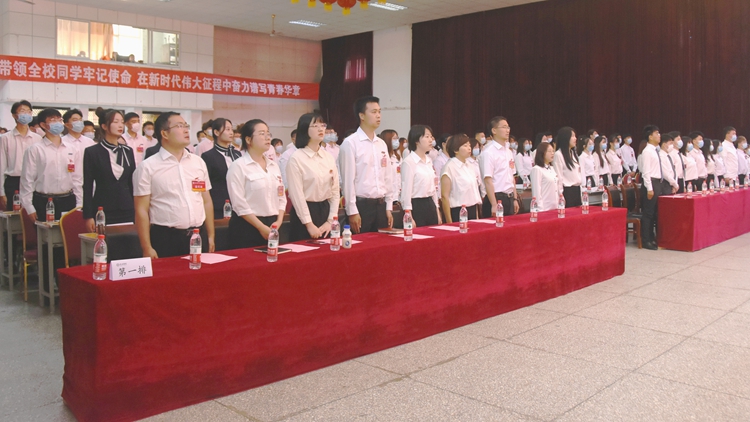 彭虎軍代表學(xué)校黨委對進一步做好青年工作提出三點要求:一要高舉習(xí)近平新時代中國特色社會主義思想偉大旗幟,深入學(xué)習(xí)貫徹習(xí)近平總書記關(guān)于青年工作的重要論述,牢記習(xí)近平總書記對青年學(xué)子的殷殷囑托,帶領(lǐng)廣大青年學(xué)黨史、知黨恩、跟黨走,堅定理想信念,立志成為中國特色社會主義事業(yè)的合格建設(shè)者和接班人。二要建強學(xué)生組織,積極履職盡責(zé),充分發(fā)揮學(xué)生組織的橋梁紐帶作用和學(xué)生干部的模范帶頭作用,服務(wù)學(xué)校中心工作,團結(jié)帶領(lǐng)廣大青年為“一流學(xué)院”建設(shè)貢獻青春力量。三要加強學(xué)生干部隊伍建設(shè),進一步堅定理想信念,培育高尚品格,練就過硬本領(lǐng),勇于創(chuàng)新創(chuàng)造,矢志艱苦奮斗,竭誠為廣大學(xué)生辦實事、辦好事、解難事,推動我校青年工作開創(chuàng)新局面。