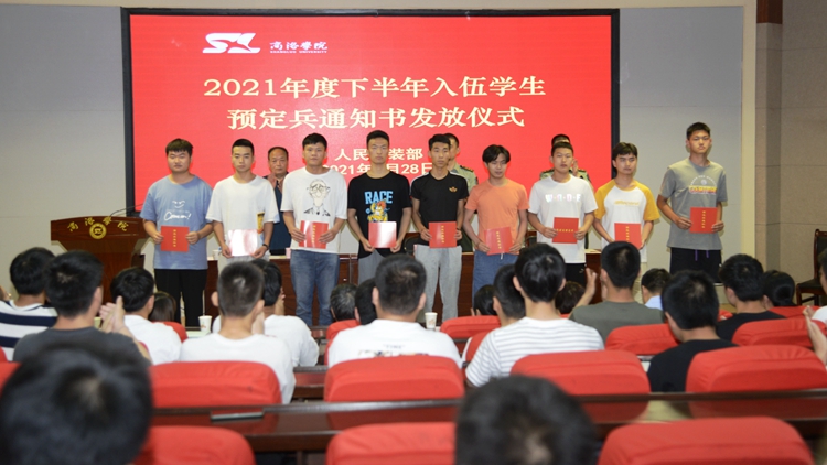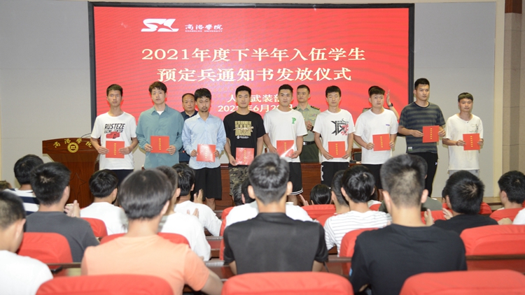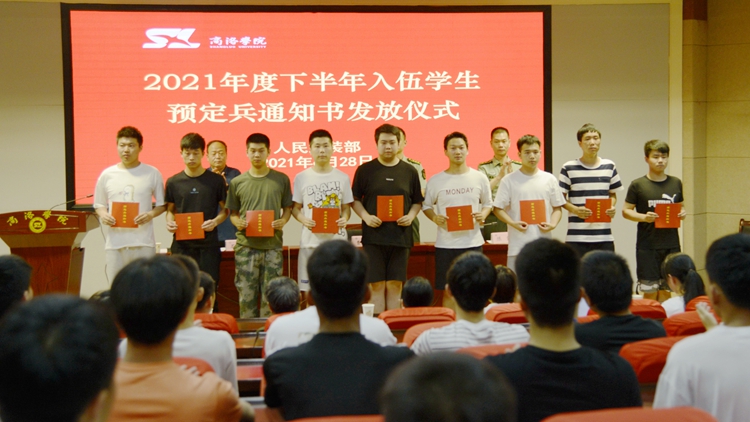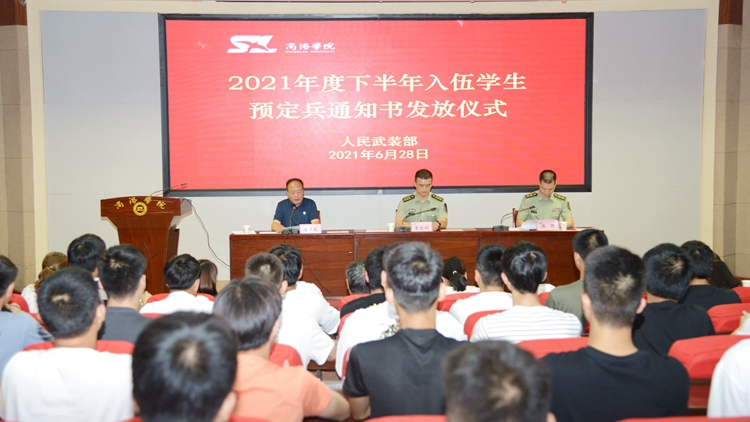 6月28日,我校舉辦了2021年度下半年入伍學生預定兵通知書發(fā)放儀式,商州區(qū)武裝部部長曹建明上校、副部長陳強中校出席會議。我校學生處處長石啟英、各二級學院學工辦主任及51名預定新兵參加了會議。會議由石啟英主持。