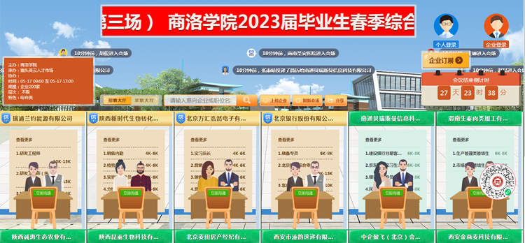 為切實做好我校2023屆畢業(yè)生就業(yè)工作,促進(jìn)畢業(yè)生更加充分、更高質(zhì)量就業(yè),4月19日,由省教育廳主辦,商洛市人社局、商洛市人才中心協(xié)辦,我校依托貓頭英云人才市場成功舉辦了2023屆畢業(yè)生春季綜合類網(wǎng)絡(luò)視頻招聘會(第二場)。
