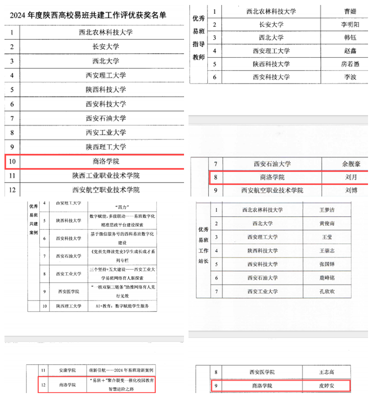 近日,陜西省高校易班發(fā)展中心公布了2024年度陜西高校易班優(yōu)秀評(píng)選結(jié)果,我校被評(píng)為2024年度“優(yōu)秀易班共建高校”,學(xué)生處心理健康中心主任劉月被評(píng)為“優(yōu)秀易班指導(dǎo)教師”,化材學(xué)院輔導(dǎo)員戴壹撰寫的易班共建案例《“易班+”聚合裂變-催化校園教育智慧進(jìn)階之路》獲評(píng)年度優(yōu)秀易班共建案例,易班學(xué)生工作站站長(zhǎng)皮婷安同學(xué)獲評(píng)“優(yōu)秀易班工作站站長(zhǎng)”。本次評(píng)優(yōu)工作面向全省高校開展,共評(píng)選出年度優(yōu)秀易班共建高校15所、優(yōu)秀易班指導(dǎo)教師10人、優(yōu)秀易班輔導(dǎo)員10人、優(yōu)秀易班共建案例15件、優(yōu)秀易班工作站站長(zhǎng)10人。