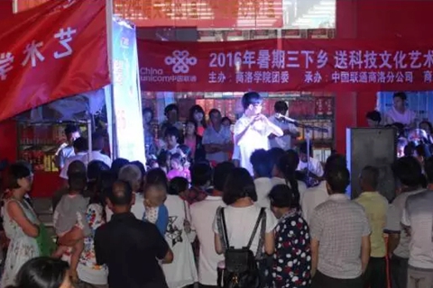 我校藝術(shù)學(xué)院十多名同學(xué)組建的文化藝術(shù)服務(wù)團(tuán)先后在商州區(qū)、丹鳳、洛南等縣區(qū)的十多個(gè)鎮(zhèn)開(kāi)展了精彩紛呈的文藝演出。通過(guò)形式多樣、內(nèi)容豐富的節(jié)目表演,既為當(dāng)?shù)厝罕娝腿チ讼娜盏那鍥?,也讓學(xué)生增長(zhǎng)了見(jiàn)識(shí),提升了才干。所到之處,文化藝術(shù)服務(wù)團(tuán)精彩的表演都贏得了在場(chǎng)觀眾的熱烈掌聲與陣陣喝彩。