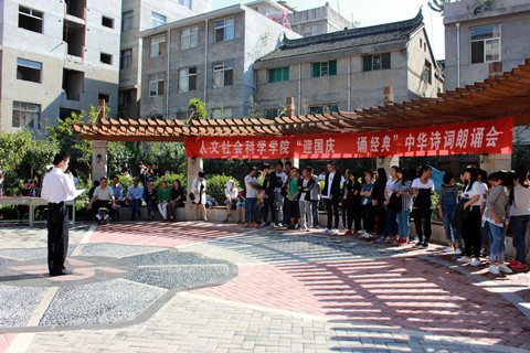 為深入學(xué)習(xí)貫徹習(xí)近平總書(shū)記系列重要講話精神,傳承中華民族優(yōu)秀傳統(tǒng)文化,9月21日,人文社會(huì)科學(xué)學(xué)院在莘子苑舉辦了“迎國(guó)慶,誦經(jīng)典”中華詩(shī)詞朗誦會(huì),以朗誦詩(shī)歌的形式迎接國(guó)慶佳節(jié)的來(lái)臨。人文社會(huì)科學(xué)學(xué)院全體師生參加了本次活動(dòng)。