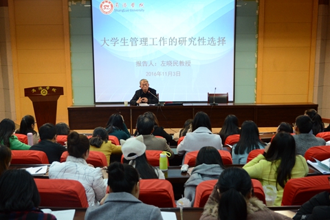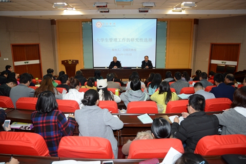 為進(jìn)一步提高我校輔導(dǎo)員職業(yè)能力,提升輔導(dǎo)員專業(yè)化、職業(yè)化水平,11月3日,學(xué)工部召開了輔導(dǎo)員專題培訓(xùn)會(huì),邀請(qǐng)我校教學(xué)督導(dǎo)組組長(zhǎng)左曉民教授為輔導(dǎo)員們做了題為《大學(xué)生管理工作的研究性選擇》的專題報(bào)告。我校全體輔導(dǎo)員和商洛職業(yè)技術(shù)學(xué)院輔導(dǎo)員聽(tīng)取了報(bào)告。報(bào)告會(huì)由學(xué)工部部長(zhǎng)石啟英主持。