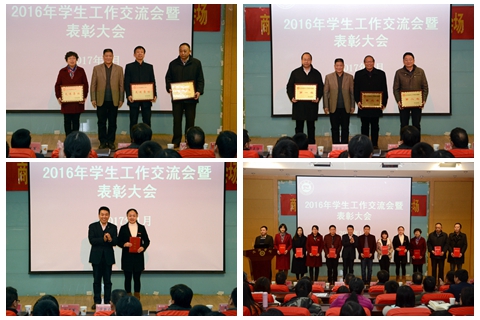 大會(huì)對(duì)2015-2016年度省級(jí)優(yōu)秀輔導(dǎo)員趙萍,生物學(xué)院等3個(gè)2016年學(xué)生工作考核先進(jìn)集體、魯綿茸等11名學(xué)生工作先進(jìn)個(gè)人、李嬙等29名優(yōu)秀班主任,經(jīng)管學(xué)院等3個(gè)就業(yè)工作先進(jìn)集體、王正良等13名就業(yè)工作先進(jìn)個(gè)人,張俊華撰寫的《建國(guó)以來(lái)青少年偶像崇拜問(wèn)題的基本脈絡(luò)及其思考》等16篇學(xué)生工作研究?jī)?yōu)秀論文,李馥利等30位輔導(dǎo)員、班主任的優(yōu)秀學(xué)生工作日志進(jìn)行了表彰。在熱烈的掌聲中,范新會(huì)、彭虎軍為獲獎(jiǎng)集體和個(gè)人代表頒發(fā)了獎(jiǎng)牌、證書。在校學(xué)生代表為優(yōu)秀班主任頒發(fā)了證書。