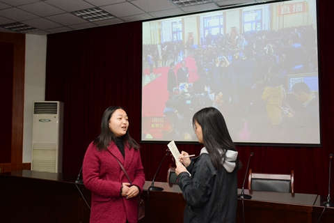 3月3日和3月5日,政協(xié)第十二屆全國委員會第五次會議、十二屆全國人大五次會議分別在北京人民大會堂開幕。我校組織師生在報告廳集中收看了開幕式實況直播,師生們分別通過手機(jī)、網(wǎng)絡(luò)、電視、廣播等媒體積極收看收聽,對兩會精神、熱點話題進(jìn)行了學(xué)習(xí)討論。