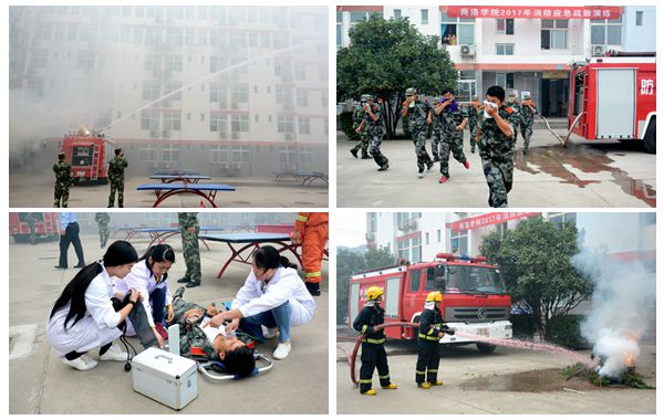 行軍拉練后,15日下午,學校組織新生舉行了消防應急疏散演練活動,為新生普及了應對火災緊急自救常識。黨委副書記彭虎軍現(xiàn)場指導了演練活動。