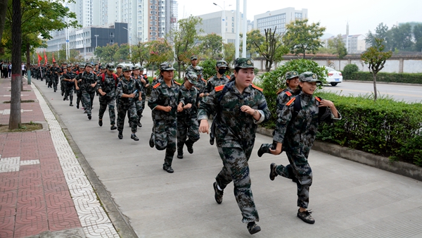 為確保此次拉練順利完成,學校做了周密的安排部署。保衛(wèi)處與地方交管部門協(xié)調(diào)配合,為行軍隊伍準備了指揮車、醫(yī)務車和保障車,在十字路口等處部署交警協(xié)助指揮交通;學生處、各二級學院黨總支負責人和新生輔導員全程跟隨行軍隊伍,重要路口警戒,重點關注掉隊人員,將女生放在排頭,輔導員走在隊伍右后方,確保拉練活動圓滿完成。歷經(jīng)三小時后,所有新生順利返回北新街校區(qū)。在行軍過程中,新生們斗志昂揚、隊列齊整、秩序井然,充分展示了軍訓成果和我校學子積極向上、不怕吃苦的精神風貌,引來了過往市民的注目和贊揚。