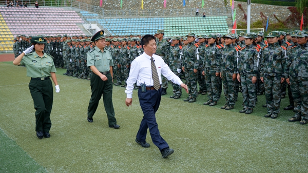 伴隨著雄壯的《中國(guó)人民解放軍進(jìn)行曲》,黨委副書記、校長(zhǎng)范新會(huì)逐一檢閱了軍訓(xùn)團(tuán)各部。全體2017級(jí)學(xué)生以連為單位,組成25個(gè)受閱方陣進(jìn)行了分列式表演。同學(xué)們口號(hào)嘹亮、氣宇軒昂、雄姿英發(fā)、步伐豪邁,以嚴(yán)整的軍容軍姿依次通過主席臺(tái),充分展現(xiàn)了當(dāng)代大學(xué)生青春向上的靚麗風(fēng)采和朝氣蓬勃的精神風(fēng)貌。
