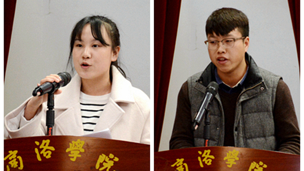 建工學(xué)院魏爭強(qiáng)同學(xué)、馬克思主義學(xué)院林何夢同學(xué)分別代表受表彰的先進(jìn)個人和受資助學(xué)生作了發(fā)言。