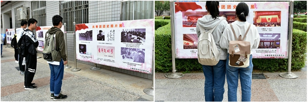 ——舉辦了以“回顧歷史足跡傳承五四精神”為主題的共青團史圖片展。展覽以歷史圖片加文字說明為主,力求讓觀展者更好的重溫和感受革命波瀾壯闊的歷程。