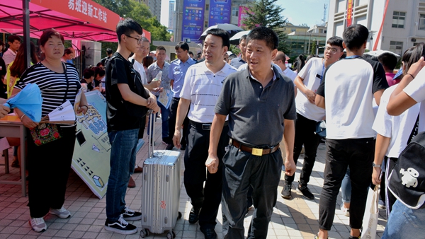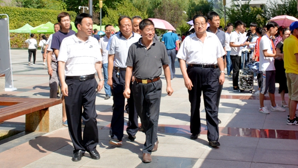 2018年我校面向28個(gè)?。ㄊ?、自治區(qū))錄取新生3593人。為了確保新生報(bào)到工作順利開展,9月4號(hào)下午,校長范新會(huì)、副校長魏書堂、黨委副書記彭虎軍、副校長劉勇帶領(lǐng)院長辦公室、宣傳部、校團(tuán)委、教務(wù)處、學(xué)生處、財(cái)務(wù)處、后勤保障處、保衛(wèi)處、信息中心等相關(guān)職能部門負(fù)責(zé)人,深入各個(gè)迎新接待場(chǎng)點(diǎn),檢查指導(dǎo)迎新工作。