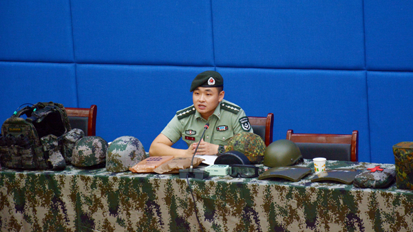 趙羽從“城市作戰(zhàn)”這一主題入手,分析了當(dāng)前全球國防裝備建設(shè)情況,回顧了我國國防裝備的發(fā)展歷程,剖析了當(dāng)前國際戰(zhàn)略局勢,對我軍未來現(xiàn)代化、數(shù)字化建設(shè)藍(lán)圖進(jìn)行了展望,并結(jié)合實(shí)物展示對我軍單兵裝備情況進(jìn)行了詳細(xì)講解。他深入淺出、幽默風(fēng)趣的講授,贏得了現(xiàn)場陣陣掌聲。