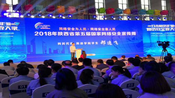 我校100余名師生參加開幕式,電信學(xué)院學(xué)生邢逸飛作為全省唯一的網(wǎng)民代表在開幕式上發(fā)言。邢逸飛說,自己是商洛學(xué)院的一名網(wǎng)絡(luò)評論員、學(xué)生記者,因為經(jīng)常性參加學(xué)校組織的培訓(xùn)交流活動,所以對網(wǎng)絡(luò)宣傳和輿論引導(dǎo)的重要性有著切身的認(rèn)識。維護網(wǎng)絡(luò)安全,爭做中國好網(wǎng)民,大學(xué)生要發(fā)揮好“排頭兵”的作用。他在大會上代表大學(xué)生和廣大網(wǎng)民鄭重承諾:一要提高政治站位,積極參加學(xué)校和網(wǎng)信部門舉辦的形式多樣的網(wǎng)絡(luò)安全教育活動,帶頭在校園中宣傳網(wǎng)絡(luò)安全知識,讓“網(wǎng)絡(luò)安全為人民,網(wǎng)絡(luò)安全靠人民”的理念深入人心;二要堅守網(wǎng)絡(luò)理性,明辨慎思,不人云亦云亂跟風(fēng),杜絕形形色色的網(wǎng)絡(luò)誘惑,保持客觀理性地接收信息、傳播信息,要慎重地轉(zhuǎn)發(fā),客觀地進行評論,既不當(dāng)傳謠者,也不做“網(wǎng)絡(luò)暴民”;三要遵守網(wǎng)絡(luò)法規(guī),做網(wǎng)絡(luò)安全法的宣傳者,做網(wǎng)絡(luò)安全法的執(zhí)行者,做網(wǎng)絡(luò)安全法的捍衛(wèi)者,做網(wǎng)絡(luò)安全法的建設(shè)者;四要用網(wǎng)而不沉溺于網(wǎng)絡(luò),用青春傳播正能量,踐行社會主義核心價值觀,把自己鍛造成堪當(dāng)民族復(fù)興大任的時代新人。