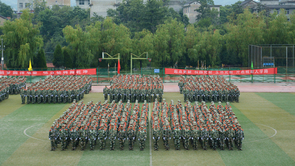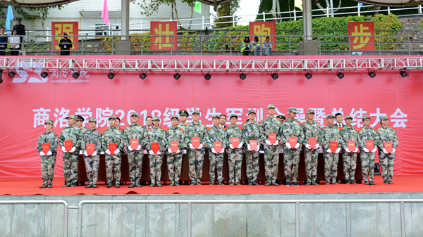 汗水書寫青春,磨練見證成長。9月20日,我校隆重舉行2018級學(xué)生軍訓(xùn)會操暨總結(jié)大會,檢閱2018級學(xué)生軍訓(xùn)成果,并對軍訓(xùn)中表現(xiàn)突出的先進(jìn)集體與先進(jìn)個人進(jìn)行表彰。校領(lǐng)導(dǎo)龍治剛、范新會、魏書堂、劉寶盈、劉勇,中國人民武警部隊商洛支隊副參謀長、軍訓(xùn)團(tuán)團(tuán)長呂喆少校,中國人民武警部隊商洛支隊執(zhí)勤一大隊隊長郭偉少校出席大會。各二級學(xué)院黨政主要負(fù)責(zé)人、有關(guān)職能部門負(fù)責(zé)人、全體2018級學(xué)生及輔導(dǎo)員參加了大會。大會由黨委副書記彭虎軍主持。