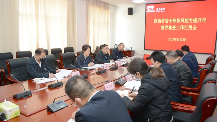 3月29日,陜西省委干部作風(fēng)能力提升年第三督導(dǎo)檢查組組長(zhǎng)、省委組織部二級(jí)巡視員郭春俠帶隊(duì)蒞臨我校,對(duì)落實(shí)省委干部作風(fēng)能力提升年工作推進(jìn)情況進(jìn)行專(zhuān)項(xiàng)督導(dǎo)檢查。學(xué)校黨委干部作風(fēng)能力提升年工作專(zhuān)班主任、黨委書(shū)記張志昌主持座談匯報(bào)會(huì)。專(zhuān)班副主任、黨委副書(shū)記彭虎軍出席匯報(bào)會(huì)。黨委辦公室·院長(zhǎng)辦公室、組織部、紀(jì)委、宣傳部相關(guān)負(fù)責(zé)人參加會(huì)議。