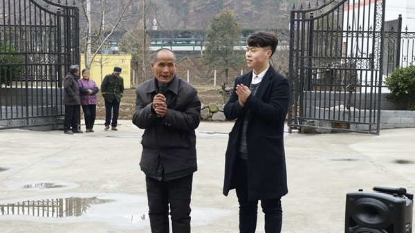 楊斜敬老院坐落在楊斜鎮(zhèn)的一個(gè)村莊里,青年志愿服務(wù)隊(duì)冒雨來到敬老院。一進(jìn)院子,這些常年生活在這里的孤寡老人們像見到親人般喜出望外,因?yàn)榻?jīng)常來往,大家很快就和老人們互動(dòng)起來。同學(xué)們在院子里唱歌、跳舞、說相聲,為老人表演節(jié)目,給這個(gè)寧靜的院子帶來了歡聲笑語,吸引了周邊村民前來觀看。管發(fā)亮老人激動(dòng)地告訴我們,自己今年64歲了,無兒無女,曾經(jīng)在街頭靠乞討生活,在政府的救助下,1992年來到敬老院,過上了有衣穿有飯吃的幸福生活。說到高興處,管發(fā)亮吼起了秦腔,一連唱起《社會(huì)主義好》《回娘家》等歌曲。