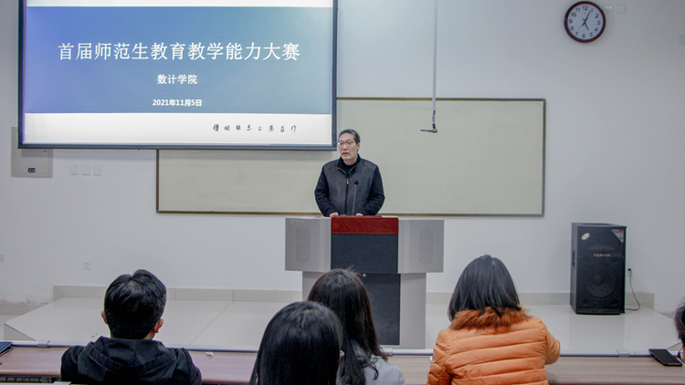為進(jìn)一步強化師范生教學(xué)基本功和教學(xué)能力,培養(yǎng)高素質(zhì)專業(yè)化創(chuàng)新型教師隊伍,彰顯師范專業(yè)特色,11月5日下午,數(shù)計學(xué)院舉辦了數(shù)學(xué)與應(yīng)用數(shù)學(xué)專業(yè)首屆師范生教育教學(xué)能力大賽。數(shù)計學(xué)院院長李超出席大賽,學(xué)校教學(xué)督導(dǎo)團專家張曉虎、王建芳、李亞文、房琳及數(shù)計學(xué)院數(shù)學(xué)與應(yīng)用數(shù)學(xué)專業(yè)相關(guān)教師擔(dān)任大賽評委。