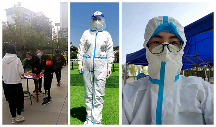 ——廣大教師響應(yīng)號(hào)召,積極參與志愿服務(wù)。4月8日首場(chǎng)全員核酸檢測(cè)拉開序幕,工作人員緊缺,馬克思主義學(xué)院教師安梅、王偉萍、王貝貝主動(dòng)請(qǐng)纓,穿上防護(hù)服,變身“大白”,在炎炎烈日下協(xié)助醫(yī)護(hù)人員完成檢測(cè)任務(wù)。4月11日,組織部發(fā)出《致全校各級(jí)黨組織和廣大共產(chǎn)黨員的倡議書》后,馬克思主義學(xué)院教師黨員積極響應(yīng),踴躍報(bào)名。劉健、葉肖、鞏麗麗、王貝貝、王偉萍等同志參與了校內(nèi)志愿服務(wù),高婷婷、宋秀方等同志積極擔(dān)任了所在小區(qū)志愿者。他們起早貪黑,頂著烈日、冒著風(fēng)雨為疫情防控做出積極貢獻(xiàn)。還有肖歲利等非黨員教師也積極向組織表達(dá)了參加志愿服務(wù)的強(qiáng)烈愿望。