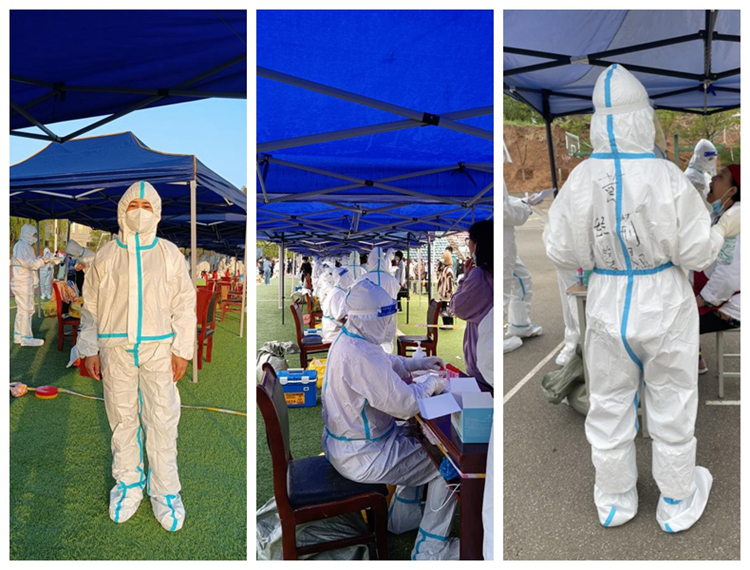 做好志愿服務(wù),發(fā)揮先鋒作用。在學(xué)校大操場(chǎng),鄧淑紅、楊鵬飛、李娜娜等教師身穿防護(hù)服,克服酷暑,連續(xù)參與全校學(xué)生核酸檢測(cè)任務(wù);在學(xué)校小操場(chǎng),黃荊晶、周方舟、丁燕琳等教師引導(dǎo)廣大教職工有序排隊(duì)、信息錄入、掃碼測(cè)溫;南院家屬區(qū),郭磊磊老師指導(dǎo)幫助退休教職工和年長(zhǎng)家屬掃碼、填報(bào)相關(guān)個(gè)人信息;青年教師公寓檢測(cè)區(qū)采樣點(diǎn),王程老師協(xié)助采樣工作人員開(kāi)展測(cè)溫、清理工作臺(tái)、現(xiàn)場(chǎng)消殺。
