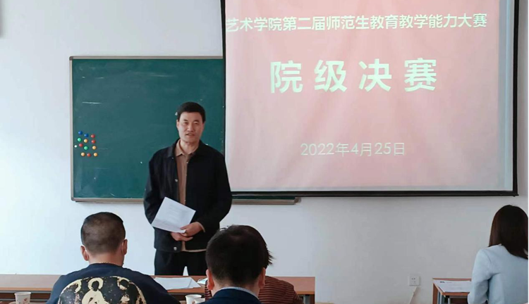 為落實(shí)學(xué)校關(guān)于培育新時(shí)代“四有好老師”活動(dòng)要求,強(qiáng)化師范生教育教學(xué)能力培育、營造追趕超越教學(xué)氛圍,有效提升師范生培養(yǎng)質(zhì)量,4月25日下午,藝術(shù)學(xué)院第二屆師范生教育教學(xué)大賽決賽在1-510教室順利舉辦,18名入圍選手進(jìn)行了激烈角逐。藝術(shù)學(xué)院院長(zhǎng)李世鵬、副院長(zhǎng)唐曌堃,教務(wù)處蘇鐵柱等9名評(píng)委對(duì)比賽進(jìn)行了指導(dǎo),并評(píng)選出了入圍校賽的選手。