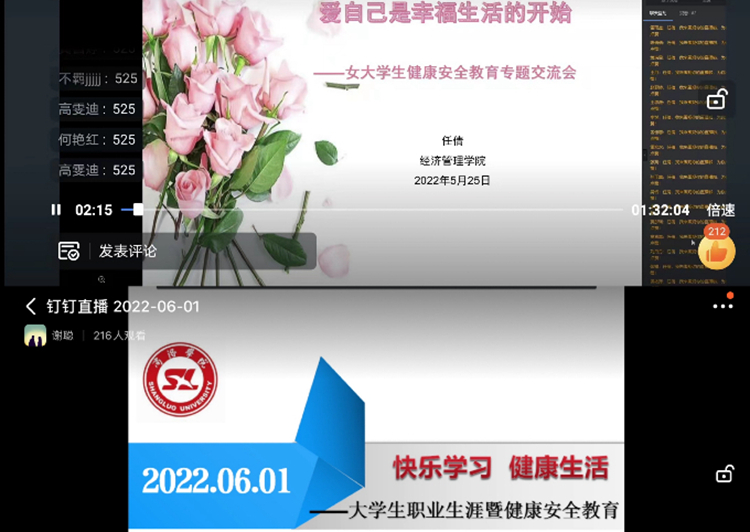 ——開(kāi)展健康安全專題分享會(huì)。為進(jìn)一步增強(qiáng)大學(xué)生心理健康教育和安全教育的實(shí)效性,切實(shí)貫徹“立德樹(shù)人”基本要求,經(jīng)管學(xué)院輔導(dǎo)員謝聰、任倩通過(guò)線上平臺(tái)組織開(kāi)展健康安全線上交流會(huì)。交流會(huì)從疫情防控、身心健康、人身安全等方面展開(kāi)分享,引導(dǎo)大學(xué)生提升健康生活心態(tài),養(yǎng)成文明、健康、科學(xué)生活方式,增加安全、生理、心理知識(shí),增強(qiáng)安全意識(shí)和自我保護(hù)能力,做好自身健康安全第一責(zé)任人。