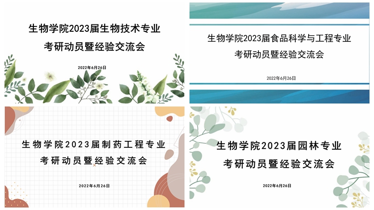 為幫助2023屆畢業(yè)生高效備戰(zhàn)研究生考試,指導(dǎo)考生選擇考研學(xué)校和專業(yè)方向,理清備考思路,6月26日晚,生物學(xué)院采取分專業(yè)、錯時錯峰方式,在丹江校區(qū)召開了2023屆畢業(yè)生考研動員會。學(xué)院黨委書記李英、院長王學(xué)軍、黨委副書記何念武、副院長梁旭華、畢業(yè)班輔導(dǎo)員、各專業(yè)青年教師代表、2022屆優(yōu)秀考研學(xué)生代表以及2023屆學(xué)生參加動員會。