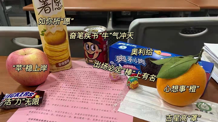 活動(dòng)中,化材學(xué)院為全院考研學(xué)子送上了寓意吉星高“罩”、如你所“愿”、“?!睔鉀_天、“棒”上有名、“蘋(píng)”穩(wěn)上岸、心想事“橙”、活“力”無(wú)限的“一研成碩”大禮包,也送去了凝聚全院師生殷殷期望和濃濃祝福的《致化材學(xué)院考研學(xué)子的一封信》。