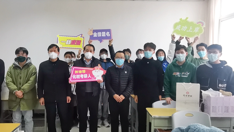 活動(dòng)結(jié)束后,參與活動(dòng)的領(lǐng)導(dǎo)和老師與120余名考研學(xué)子合影留念,同學(xué)們高舉“一戰(zhàn)成碩”“金榜題名”“成功上岸”和“加油呀,化材考研人”等專(zhuān)屬定制手舉牌留住美好的瞬間。
