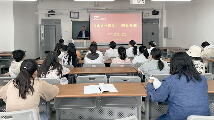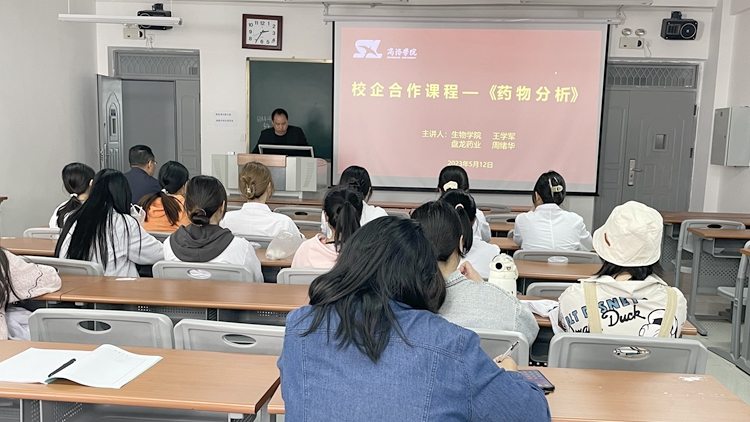 5月13日下午,由生物學(xué)院和陜西盤龍藥業(yè)集團(tuán)股份有限公司共同開發(fā)的校企合作課程建設(shè)活動在丹江校區(qū)5號教學(xué)樓開展。此項校企合作課程《藥物分析》是制藥工程專業(yè)必修課,校內(nèi)主講教師為生物學(xué)院王學(xué)軍教授,校外主講人為盤龍藥業(yè)藥研院的資深專家周緒華。學(xué)院制藥工程專業(yè)師生代表參加活動。