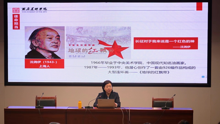 為進一步推動黨的二十大精神全面融入思政課教學(xué)環(huán)節(jié),持續(xù)加快思政課改革創(chuàng)新的步伐,5月12日下午,全國藝術(shù)院校思想政治理論課研究會理事、西安美術(shù)學(xué)院馬克思主義學(xué)院院長沈?qū)毶徑淌谑苎麃砦倚#⒁浴端囆g(shù)與思政的同頻共振推進思政課教學(xué)創(chuàng)新》為題作專題報告。馬克思主義學(xué)院全體教師、學(xué)生代表,藝術(shù)學(xué)院部分師生參加報告會。報告會由馬克思主義學(xué)院院長蔣正治主持。
