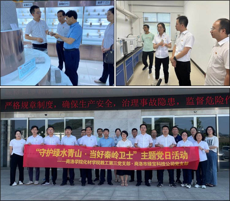6月30日,在“七一”建黨節(jié)到來之際,化材學(xué)院教工第三黨支部聯(lián)合商洛市綠寶環(huán)境科技有限公司黨支部在丹江校區(qū)開展“守護綠水青山·當(dāng)好秦嶺衛(wèi)士”主題黨日活動。雙方圍繞基層黨建工作、秦嶺生態(tài)環(huán)境保護進行了深入交流,并簽訂了《商洛學(xué)院校外實踐教學(xué)基地協(xié)議》。商洛市生態(tài)環(huán)境局原黨組書記、局長、二級巡視員劉福明,綠寶公司董事長、總經(jīng)理、黨支部書記張小峰,化材學(xué)院黨委書記李斌、副院長喬成芳,綠寶公司、商洛市生態(tài)環(huán)保產(chǎn)業(yè)協(xié)會黨員和化材學(xué)院教工第三黨支部全體黨員參加活動。