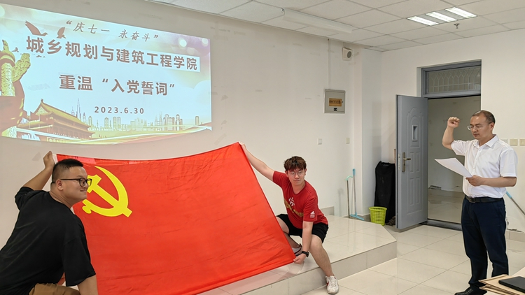 篳路藍(lán)縷創(chuàng)偉業(yè),不忘初心再啟航。為熱烈慶祝中國共產(chǎn)黨建黨102周年,推動學(xué)習(xí)貫徹習(xí)近平新時(shí)代中國特色社會主義思想主題教育走深走實(shí),“七一”前夕,城鄉(xiāng)規(guī)劃與建筑工程學(xué)院黨委舉行“重溫入黨誓詞”“學(xué)黨章”“領(lǐng)導(dǎo)班子講黨課”“開展主題黨日活動”“我為黨的生日送祝?!钡认盗袘c“七一”活動。