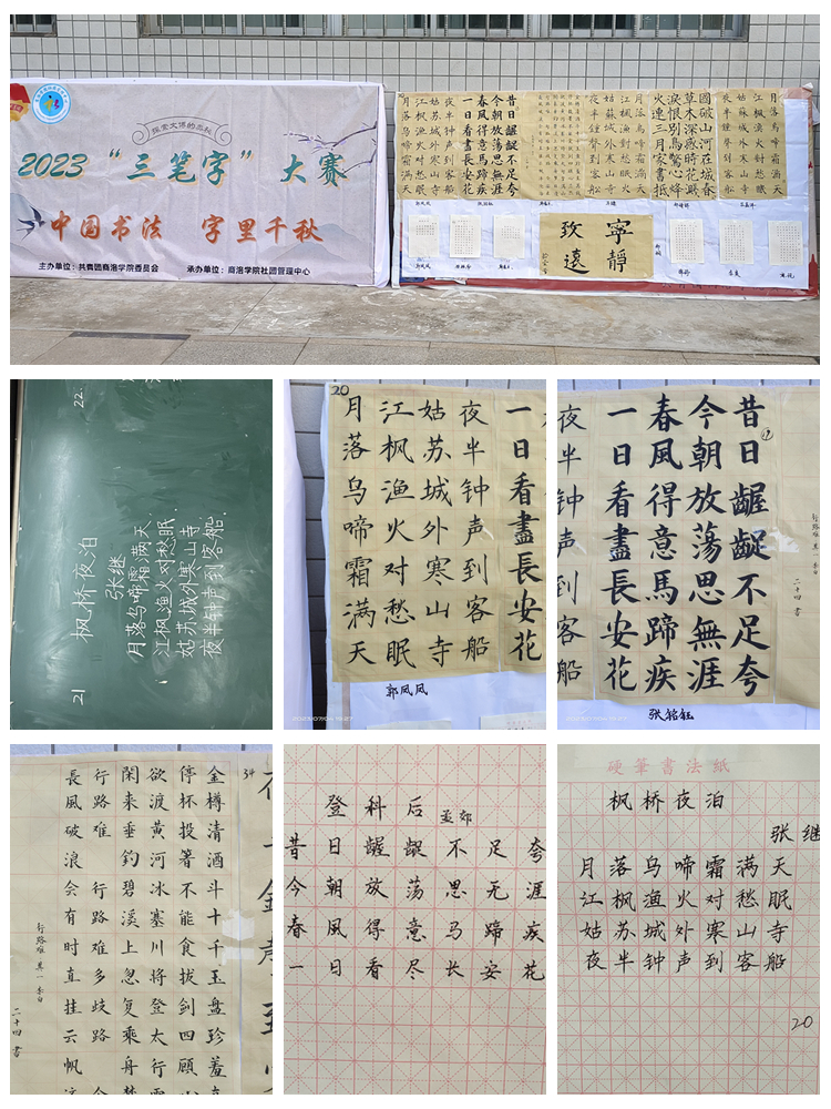 本次大賽自6月初開始,面向全校學生,從前期報名、動員、院級初賽,到校級決賽歷時近一個月,共有600余人參加初賽,60人進入校級決賽。決賽分為鋼筆組、粉筆組和毛筆組三個賽道。參賽題目、內容均選自我國各類優(yōu)秀古詩詞。