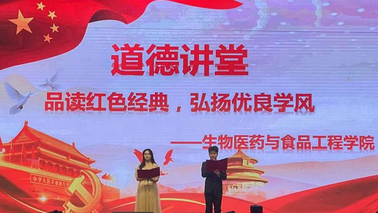 為教育引導(dǎo)青年學(xué)子賡續(xù)紅色基因、傳承紅色精神,營(yíng)造良好學(xué)風(fēng),11月15日,生物醫(yī)藥與食品工程學(xué)院以“品讀紅色經(jīng)典,弘揚(yáng)優(yōu)良學(xué)風(fēng)”為主題舉辦道德講堂。校黨委宣傳部副部長(zhǎng)王霄飛,生物學(xué)院黨、政負(fù)責(zé)人,黨員和教師代表及2023級(jí)全體學(xué)生參加了活動(dòng)。