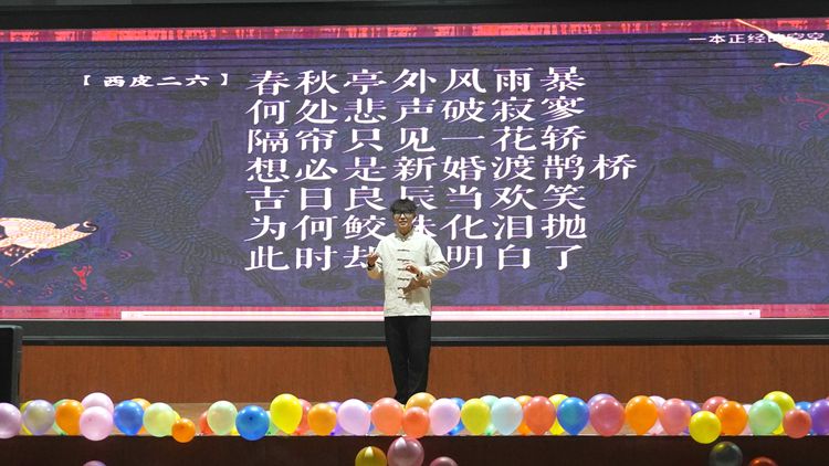 活動(dòng)在漢服社的《風(fēng)雅頌》拉開帷幕。天風(fēng)詩(shī)社的朗誦《尋李白》、鳴龍雙截棍社團(tuán)的《棍動(dòng)山河》、武術(shù)協(xié)會(huì)的《武耀青春》、大藝團(tuán)的《在你的身邊》《默》《Always online》、相聲小品協(xié)會(huì)的《你睡了沒》和《好學(xué)生與壞學(xué)生》等豐富多彩的節(jié)目輪番上臺(tái),以多樣式、深內(nèi)涵、精表演的文藝表現(xiàn)形式,為現(xiàn)場(chǎng)觀眾呈現(xiàn)了一場(chǎng)精彩紛呈的視聽盛宴。