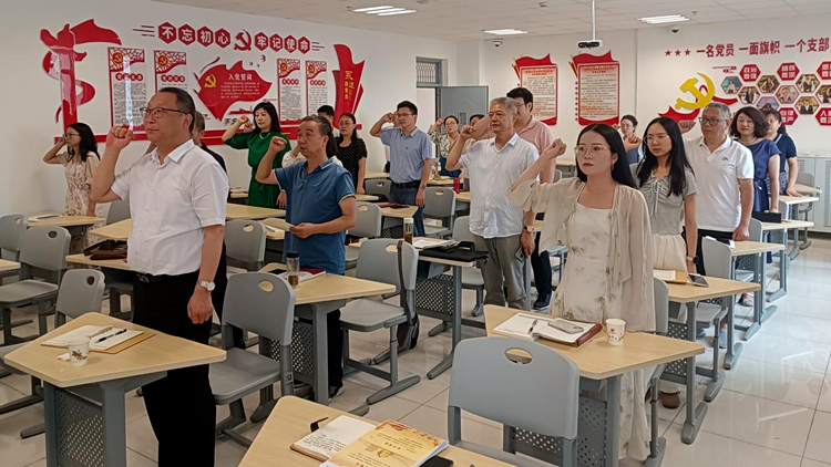 活動中,全體黨員集中學(xué)習了習近平總書記關(guān)于全面加強黨的紀律建設(shè)的重要論述。劉寶盈代表黨組織向王秀絨、侯德鋒等10位黨員發(fā)放了專屬政治生日賀卡。黨總支書記劉麥霞帶領(lǐng)全體黨員面向黨旗莊嚴宣誓,重溫了入黨誓詞。教工第一黨支部書記武曉婕和教工第二黨支部書記李雪峰分別以《黨史中的警示教育》《黨史中的紀律建設(shè)》為題講授專題黨課。