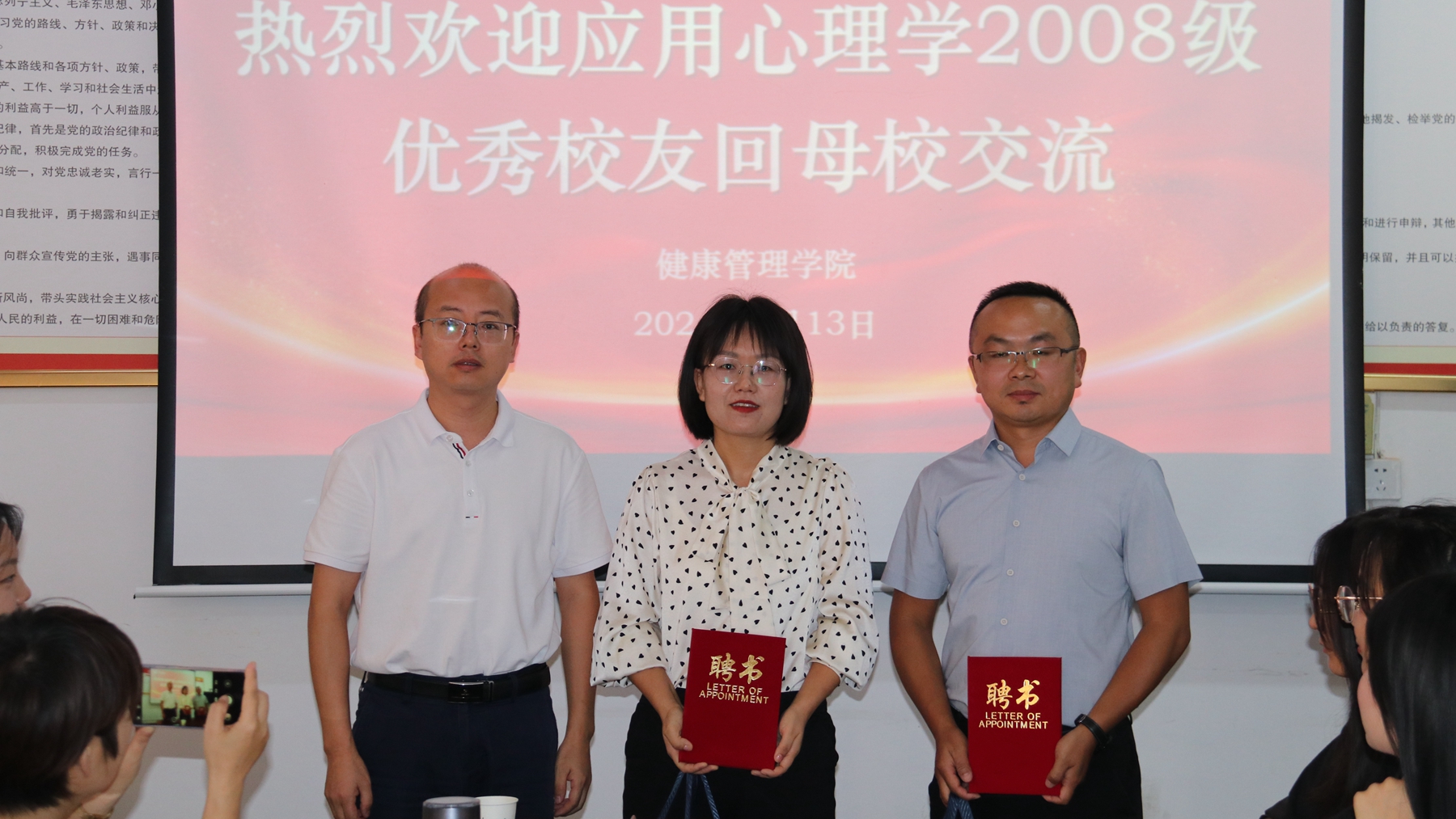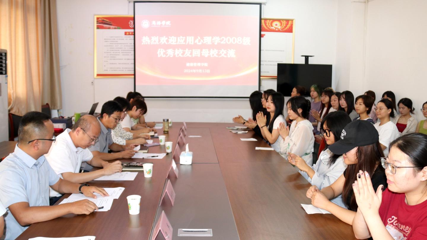 為進(jìn)一步做好2025屆畢業(yè)生就業(yè)工作,9月13日,健康管理學(xué)院邀請府谷縣華陽九年制學(xué)校骨干教師石小潔和陜西盛潤興合工貿(mào)有限公司總經(jīng)理黃明珠兩位08級應(yīng)用心理學(xué)專業(yè)優(yōu)秀校友回校,參加“優(yōu)秀校友面對面”就業(yè)指導(dǎo)座談會,與畢業(yè)生一起分享求職創(chuàng)業(yè)經(jīng)歷及工作感悟,為畢業(yè)生就業(yè)提供指導(dǎo)和幫助。學(xué)院黨委書記王攀、黨委副書記楊憲華、心理系相關(guān)教師、輔導(dǎo)員及應(yīng)用心理學(xué)2025屆全體學(xué)生參加座談會。