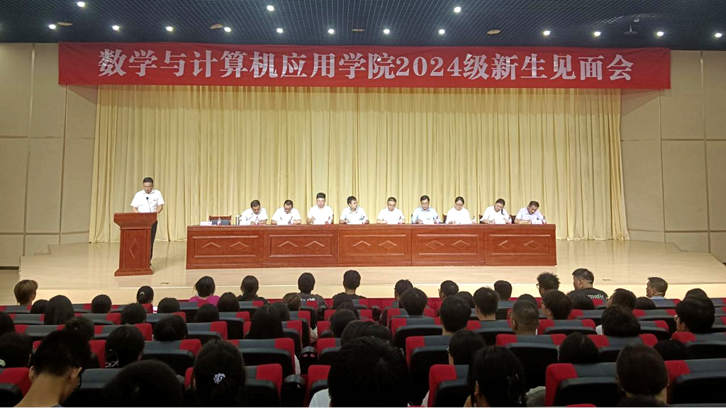 為幫助新生們更快地融入大學(xué)生活、感受學(xué)院文化氛圍、規(guī)劃學(xué)習(xí)方向,9月18日晚,數(shù)計(jì)學(xué)院在八號(hào)樓5G影院舉辦數(shù)學(xué)與計(jì)算機(jī)應(yīng)用學(xué)院2024級(jí)新生見面會(huì)。數(shù)計(jì)學(xué)院領(lǐng)導(dǎo)班子、系主任、2024級(jí)新生班級(jí)輔導(dǎo)員和班主任參加本次大會(huì)。會(huì)議由學(xué)院黨委副書記·紀(jì)委書記·副院長(zhǎng)許博主持。