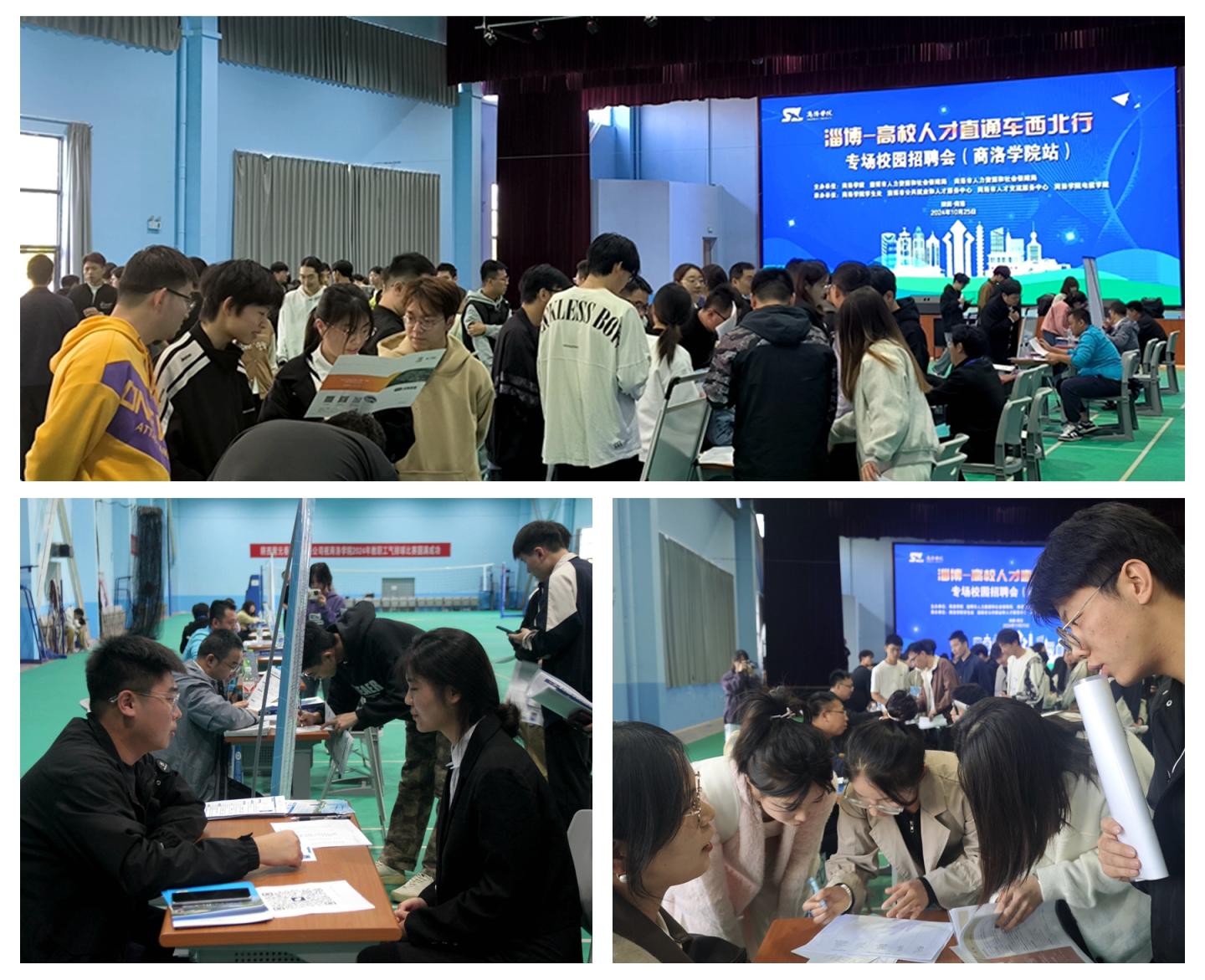 為進(jìn)一步做好2025屆畢業(yè)生就業(yè)工作,持續(xù)優(yōu)化招聘會(huì)舉辦形式,充分搭建用人單位和畢業(yè)生交流平臺(tái),10月25日,山東省淄博市人力資源和社會(huì)保障局?jǐn)y淄博市企事業(yè)單位來我校開展了淄博-高校人才直通車西北行商洛學(xué)院專場(chǎng)校園招聘會(huì),并就建立校政企合作、鞏固和發(fā)展長期穩(wěn)定的供需關(guān)系進(jìn)行交流。商洛市人才中心副主任董毅,淄博市人社局就業(yè)管理服務(wù)中心科長焦廣志等相關(guān)領(lǐng)導(dǎo)現(xiàn)場(chǎng)指導(dǎo)招聘工作。我校學(xué)生處相關(guān)負(fù)責(zé)人,各相關(guān)二級(jí)學(xué)院黨委書記及畢業(yè)班輔導(dǎo)員參加招聘會(huì)并為畢業(yè)生提供就業(yè)指導(dǎo)服務(wù)。
