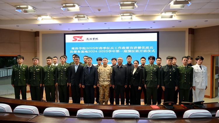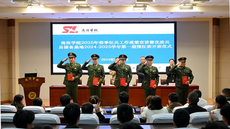 為激發(fā)廣大學(xué)生的愛國熱情,號召適齡青年積極響應(yīng)國家號召、參軍入伍,投身國防事業(yè),11月6日,商洛學(xué)院人民武裝部舉行2025年春季征兵工作政策宣講暨優(yōu)質(zhì)兵員儲備基地2024-2025學(xué)年第一期預(yù)征班開班儀式。商州區(qū)人民武裝部上校政委高運鋒、商洛學(xué)院人民武裝部負責人出席了活動。各學(xué)院征兵工作聯(lián)絡(luò)員、輔導(dǎo)員代表,我校優(yōu)質(zhì)兵員儲備基地訓(xùn)管骨干及預(yù)征班學(xué)員120余人參加了活動?;顒佑缮搪鍖W(xué)院人民武裝部部長李彥廣主持。