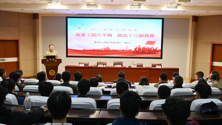 高運鋒結(jié)合個人軍旅生涯現(xiàn)身說法,以《立志參軍 精忠報國》為題,從入伍優(yōu)待政策、參軍入伍要求、應(yīng)征入伍流程三個方面就征兵工作有關(guān)政策進行了全面解讀。他勉勵同學(xué)們要牢固樹立“保家衛(wèi)國終不悔,勵志軍營獻青春”的意志,刻苦努力、認真學(xué)習(xí),用實際行動為“中國夢 強軍夢”貢獻個人力量。