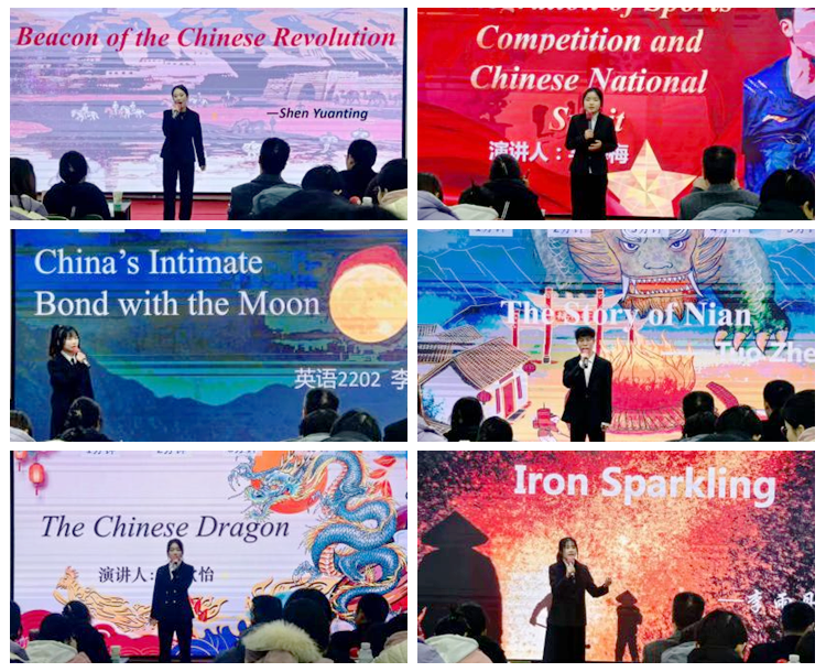 選手的演講內(nèi)容既涵蓋了春節(jié)、中國(guó)龍、書法、絨花、打鐵花等中國(guó)傳統(tǒng)文化元素,也包括革命故事、體壇健兒、太空探索、木蘭從軍等展現(xiàn)中國(guó)精神的事例。選手們以飽滿的精神、從容的臺(tái)風(fēng)、流利的口語(yǔ)展現(xiàn)出英語(yǔ)專業(yè)學(xué)生扎實(shí)的專業(yè)基礎(chǔ)、良好的口語(yǔ)水平和自信的青春風(fēng)采。
