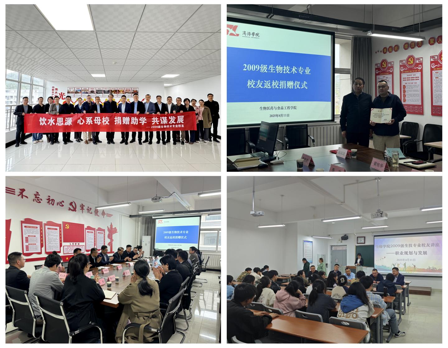 四位優(yōu)秀校友回憶了在母校的求學(xué)經(jīng)歷,對母校的培養(yǎng)和老師的辛勤付出表示感謝。他們表示,希望此次捐贈能為母校的建設(shè)和發(fā)展貢獻(xiàn)自己的一份力量,助力學(xué)弟學(xué)妹們成長成才。儀式結(jié)束后,四位校友圍繞生物技術(shù)專業(yè)發(fā)展前景、大學(xué)職業(yè)規(guī)劃與發(fā)展、專業(yè)能力提升等方面為22級生物技術(shù)專業(yè)學(xué)生作了報告,現(xiàn)場氣氛熱烈。