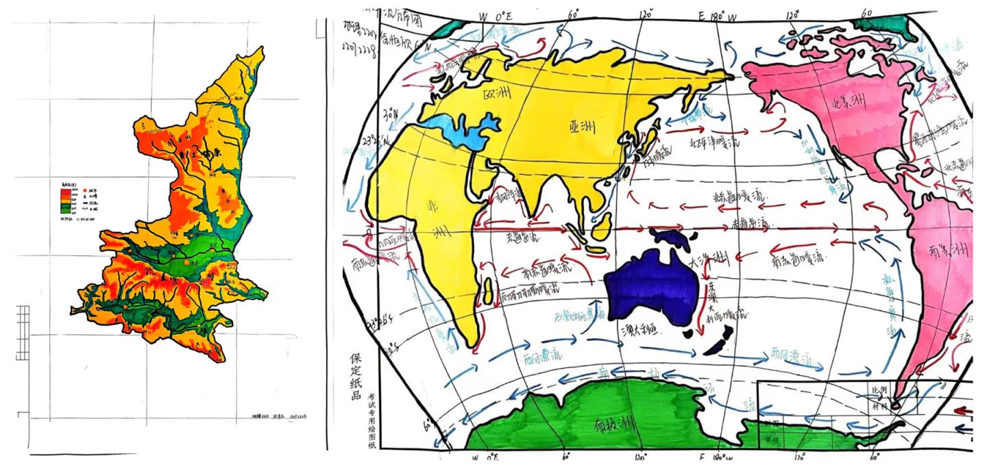 藝術(shù)與地理交融,繪就山河經(jīng)緯。為提升師范生繪圖能力與空間思維素養(yǎng),探索出“地理+美育”的創(chuàng)新路徑,4月17日至29日,“筆繪經(jīng)緯,圖攬?zhí)煜隆钡乩砝L圖大賽如期舉行。43名參賽者以專業(yè)測繪功底為基,用水彩、馬克筆等媒介再現(xiàn)地理風貌。學院從科學準確性、藝術(shù)表現(xiàn)力和創(chuàng)意新穎性三個維度進行綜合排序,最終評選出9份作品在院內(nèi)公開推廣學習。