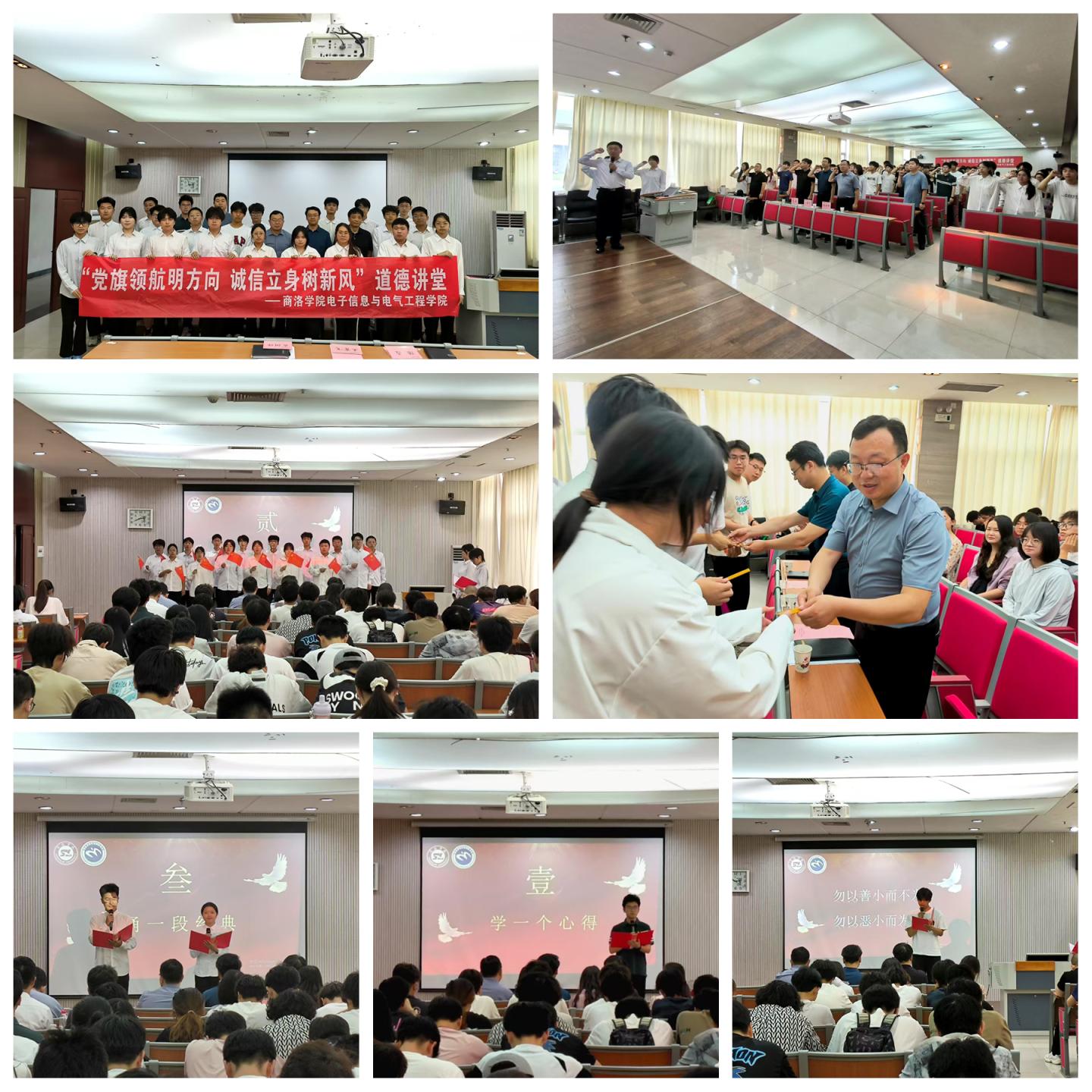 為弘揚(yáng)誠(chéng)信美德,筑牢理想信念根基,6月18日,電信學(xué)院舉辦“黨旗領(lǐng)航明方向 誠(chéng)信立身樹新風(fēng)”主題道德講堂活動(dòng)。校黨委委員、宣傳部部長(zhǎng)王霄飛,電信學(xué)院黨委書記袁訓(xùn)鋒、院長(zhǎng)陳垚,學(xué)院全體黨支部書記、輔導(dǎo)員、學(xué)生代表170余人參加活動(dòng)。