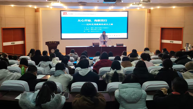 為幫助師范生明晰職業(yè)方向、夯實專業(yè)基礎(chǔ),12月1日,人文學(xué)院邀請96級英語教育專業(yè)優(yōu)秀校友、商洛市初級中學(xué)副校長喻莉作了題為“從心開始,向新而行——邁向優(yōu)秀教師的成長之路”的報告。英語專業(yè)、漢語言文學(xué)專業(yè)150余名學(xué)生參加了報告會。報告會由院黨委書記劉麥霞主持。